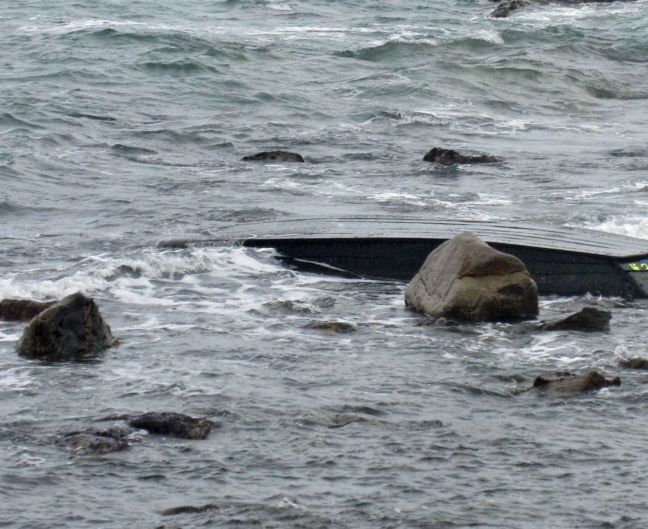 きょう午後、木造船の漂着現場を見てきた。ごつごつとした岩が海面に突き出ていて、その岩に挟まるように船は裏返しに漂着していた。接岸したのではなく、日本海で難破して漂着したのだろうか。遺体などは見つかってはいない。この地は「寺越事件」のあった場所と近い。(※写真は、羽咋市滝町の沿岸のサイクリングロードから撮影=15日午後1時35分ごろ)