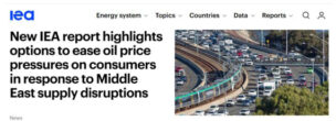 興味深いのはパリに本部を置くIEA(国際エネルギー機関)が加盟各国に求めている提言。IEAは1974年の第一次オイルショックをきっかけにOECD(経済開発協力機構)の加盟国で構成され、産油国の窓口や加盟国の互助・協力をつなぐ役割を担っている。IEA公式サイトには今月20日付のリポートが掲載されている。「New IEA report highlights options to ease oil price pressures on consumers in response to Middle East supply disruptions」。原油価格の高騰を受けて、IEAは加盟国に対して備蓄石油の協調放出を求めている。リポートで興味深いのは、加盟国の政府や産業界だけの対策では混乱の規模を完全に抑えられず、消費者サイドの対応も重要だと強調し、一般の家庭レベルでできる具体的な対応策をまとめ提案している。「Immediate actions to reduce demand(需要削減のための即時対策)」の10項目は以下(意訳)。