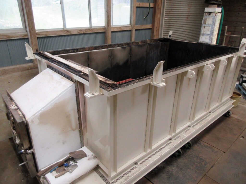 珠洲焼祭りを見学した後、今度は炭焼き窯を見学に行った。山の中で製炭業を営む大野長一郎氏を訪ねた。茶道用の炭である「菊炭」を生産する石川県内では唯一の業者でもある。今回の能登半島地震で稼働していた4つの炭焼き窯が全壊した。2022年6月19日の震度6弱の揺れで窯の一部が大きくひび割れ、2023年5月5日の震度6強でも窯の一部が崩れた。震災のたびに支援者の力添えを得ながら修復していたが、本人は限界を感じていた。ことし5月に訪れたときには、「土で造る窯はもう無理。地震に強い鉄窯でやってみる」と語っていた。その後、クラウドファンディングを利用し、金属製窯の導入した=写真・下=。