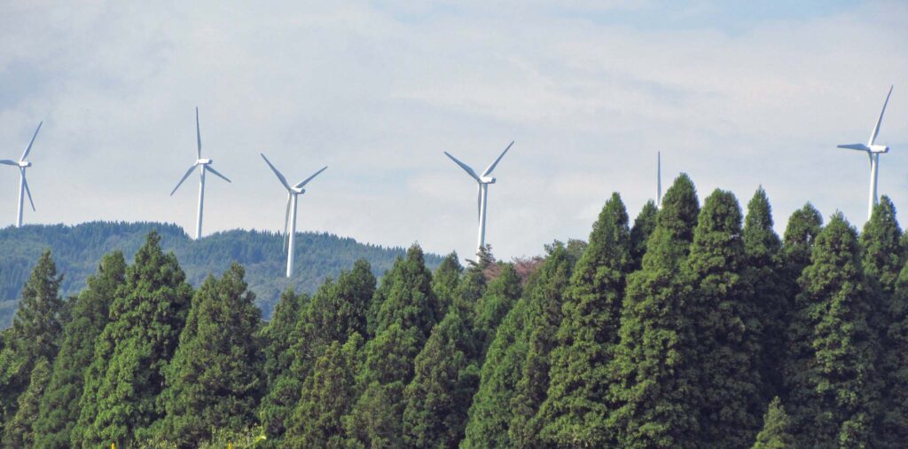 先日(今月12日)に能登半島の尖端の珠洲市に行くと、山の尾根の風車が回っていた=写真・上=。同市にある30基の風力発電は長さ30㍍クラスのブレイド(羽根)で、日本海から風で悠然と回る光景は自然のエネルギーを感じさせ、ある意味で地域のシンボルでもある。それが、去年元日の最大震度7の能登半島地震ですべて停止した状態となった。メンテナンスを施せば再稼働するものの、山道などが崩れてアクセスがままならない状態が続いていた。それがようやく回り始めたようだ。