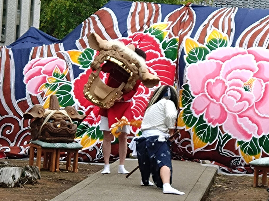 町内の世話役の説明によると、ことし7月に獅子舞保存会を設立し、お披露目に向けて練習を積んできた。棒振り役が獅子を退治する獅子舞の演技は「半兵衛流」と称され、泉が丘1丁目の旧町名である「地黄煎(じおうせん)町」が発祥の地とされる。半兵衛流の演舞は石川県内に広く伝播している。お膝元で獅子舞が百数十年の眠りから覚めたようだ。