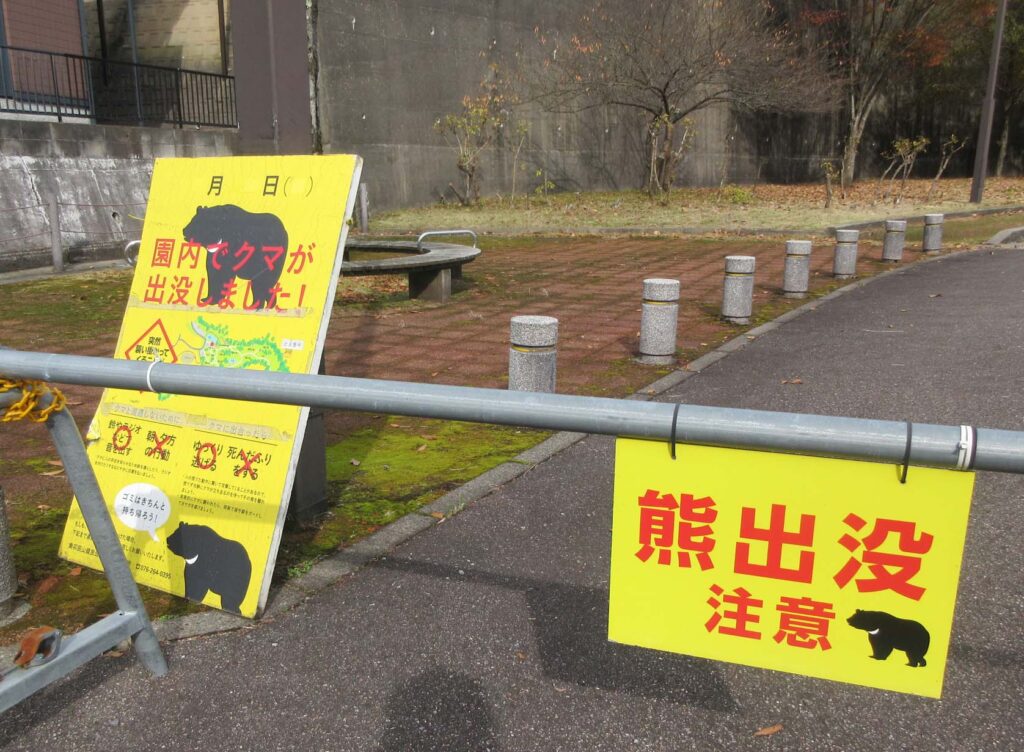 話は変わる。このところクマ出没が金沢でも相次いでいる。石川県ではことしのクマの出没件数は336件(今月11日時点)で、このうち金沢市内では50件ほどになる。先日11日午後6時35分ごろ、金沢市の山手に近い銚子町で体長1㍍ほどの1頭を目撃したと住民から行政に出没情報が寄せられた。このため、市職員と警察署員のパトロールを行った(地元メディアの報道)。銚子町は付近に北陸大学があり、金沢大学とも近い。金沢大がある角間キャンパス付近では「クマ注意」などの看板が掲げられている=写真・下=。通学する学生たちの間でも緊張感が漂っているのではないだろうか。