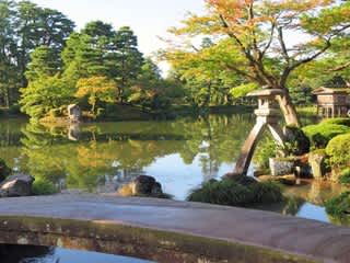 ことじ灯ろう=写真・下=など30分ほど兼六園を散策して、随身坂口の門を出ようとすると風が頬をなでた。松の枝葉がサラサラと音を立てた。庭を愛したドイツの詩人、ヘルマン・ヘッセの作品を思い出した。「あの涼しい庭の梢(こずえ)のざわめきが私から遠のけば遠のくほど私はいっそう深く心から耳をすまさずにはいられない、あの頃よりもずっと美しくひびく歌声に」(『青春時代の庭』)。梢のざわめきがハーモニーのような美しい歌声に聞こえた。